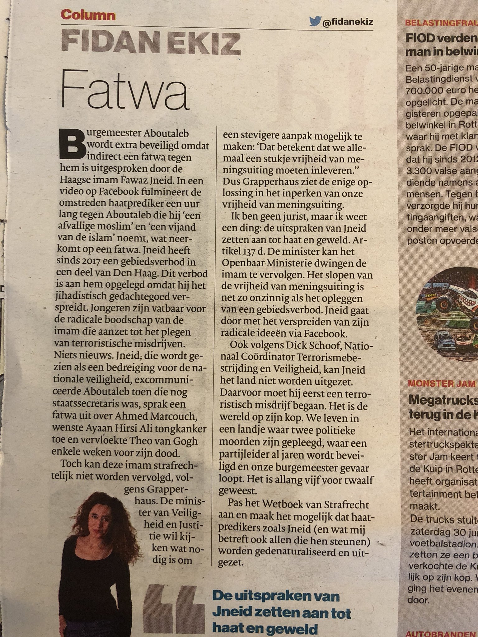 in haar column in de Volkskrant