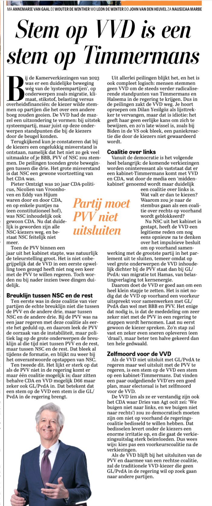 Wilders heeft wel de verkeerde keuze gemaakt, omdat... hij geen andere keuze had. Misschien dat hij over een, twee jaar (na het vallen van Kabinet Timmerhout-1) dit wél moet (!) gaan doen om Nederland nog te redden.