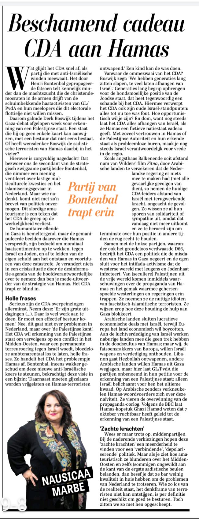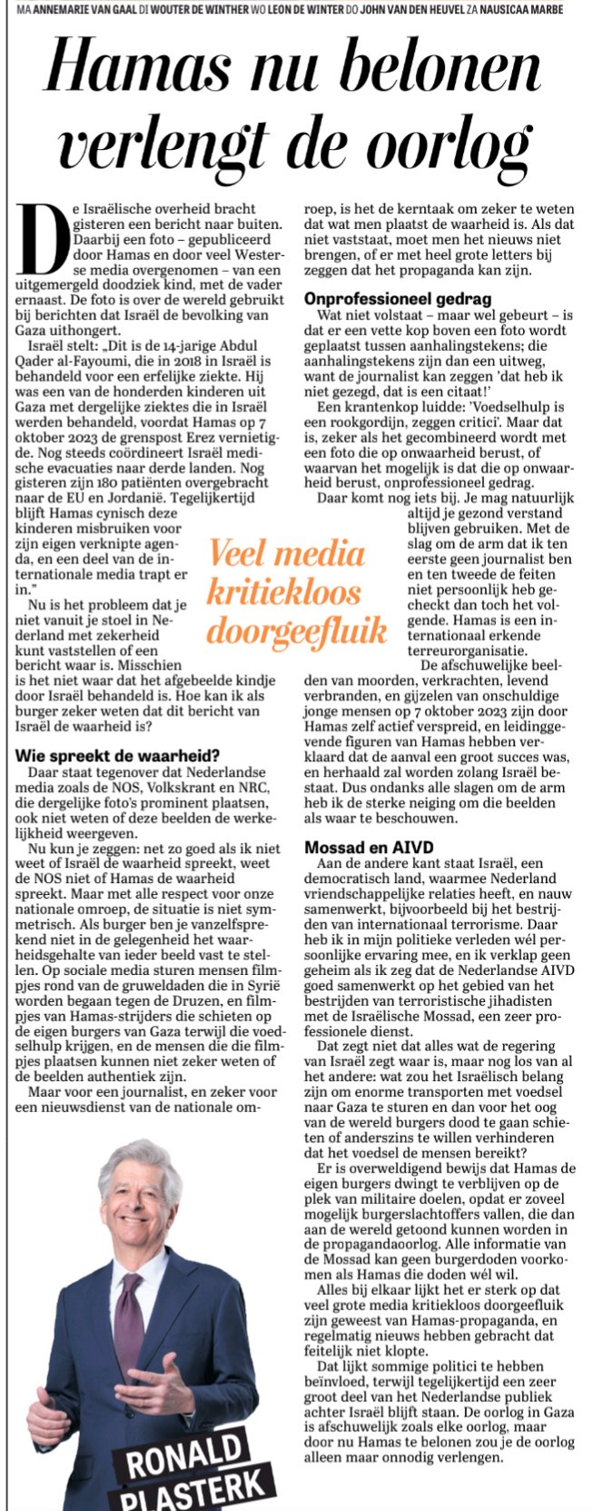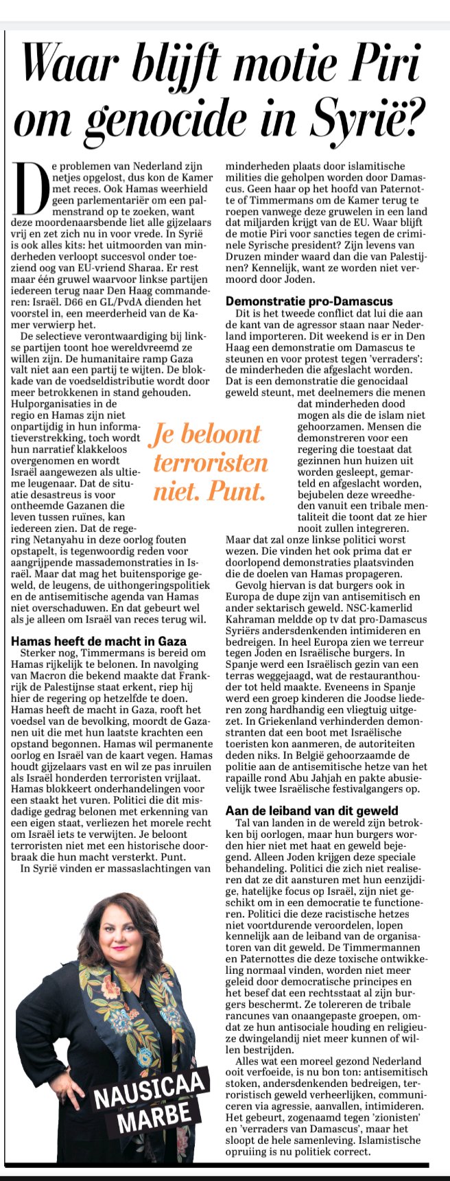 De héle samenleving in Gaza is gegijzeld door deze beestachtige gewapende terreurbeweging. De infrastructuur wordt misbruikt. Schoolkinderen werden geïndoctrineerd met martelaarschap. Ziekenhuizen omgebouwd tot lanceerinstallaties. De bevolking wordt opzettelijk in de ellende gehouden – als menselijk schild, als propaganda-instrument. Mensenrechtenorganisaties spreken over Israël, maar durven Hamas niet te benoemen.