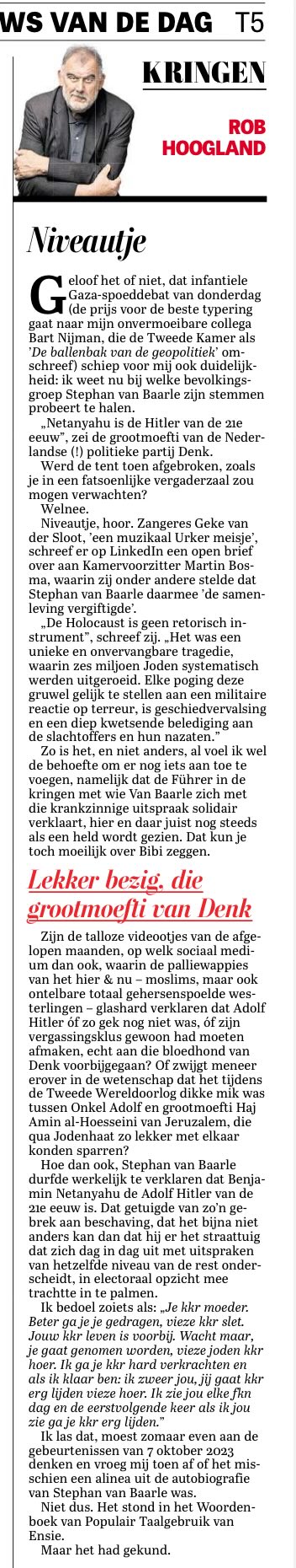 Tóch blijven we in het Westen praten over ‘proportionaliteit’, alsof het afwegen van doden een ethische weegschaal is. We blijven maar druk uitoefenen op Israël, dat zich keer op keer slechts verdedigt tegen existentiële dreiging. Géén veroordelingen van Hamas, geen sancties tegen Iran, geen consequent beleid. Maar wél de eeuwige verontwaardiging zodra Israël terugslaat.