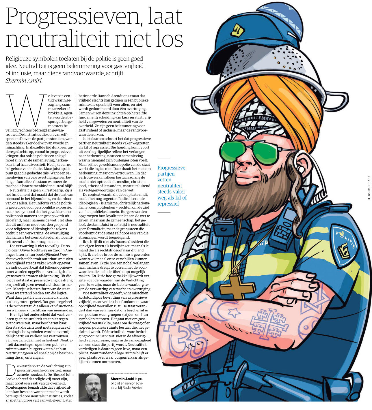 Geen hoofddoek bij politie. Eigenlijk ook niet in't onderwijs.