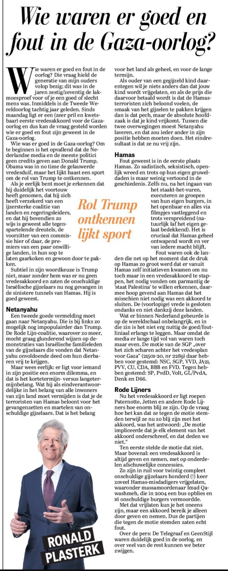 We hebben het hier nadrukkelijk niet over naïviteit! We hebben het over kwaadaardigheid. Over keiharde collaboratie met terroristen. Met Hamas, Hezbollah en met de ayatollahs van Iran. Over een vernietigingsdrang waar Hitler jaloers op zou zijn. En Frans Timmermans? Ook hij stemde vóór. De man die bij iedere Holocaustherdenking plechtig “nooit weer” prevelt, maakt van die woorden een obscene karikatuur. Zijn stem was een bewuste keuze. Een keuze vóór herhaling van de geschiedenis: wieder, wieder, immer wieder!
