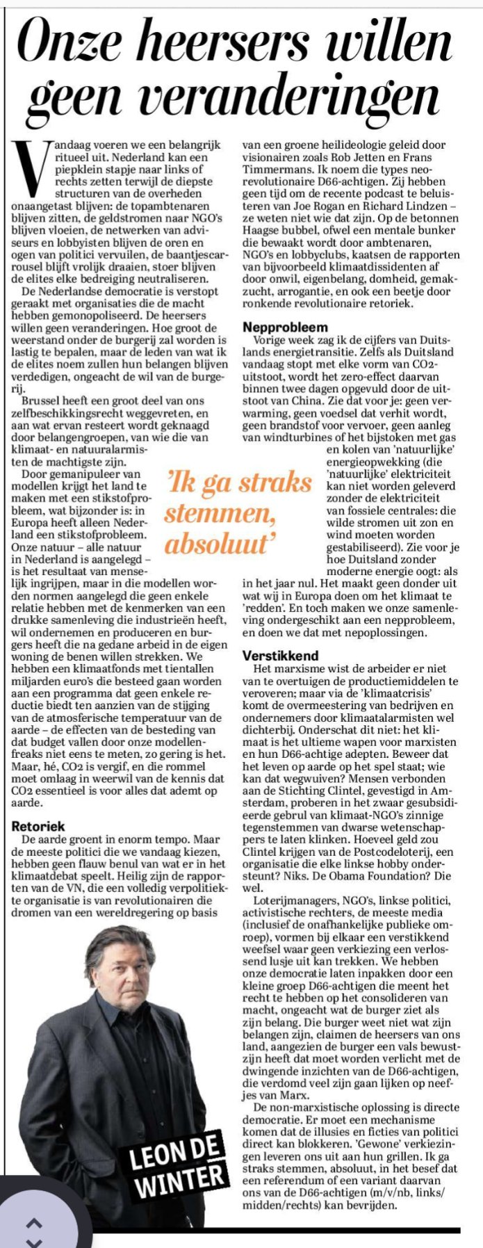 En dus staan we hier. D66 viert feest. Niemand weet precies waar al die D66-stemmers vandaan kwamen, vermoedelijk stemmers die er geen probleem in zien dat de democratie, welvaart en vrije meningsuiting verder worden afgeschaft. Maar zijn ze er überhaupt? En de partij mag verder bouwen aan de heilige missie van Rutte IV: terwijl het vertrouwen in de politiek minder dan 75% is.